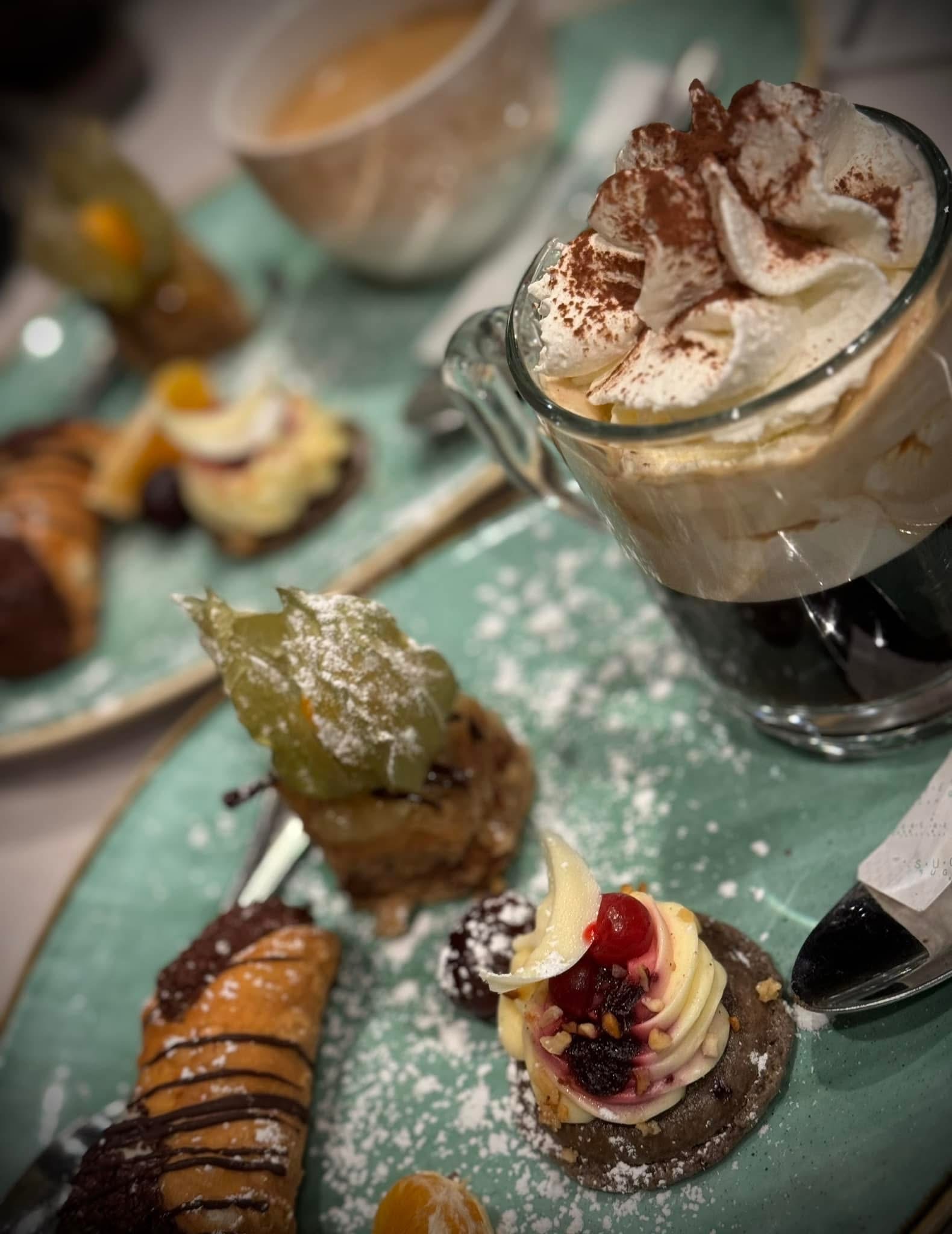 crème fraîche, crevettes marinées, roquette, beurre persillé à l’ail, tomates cerises